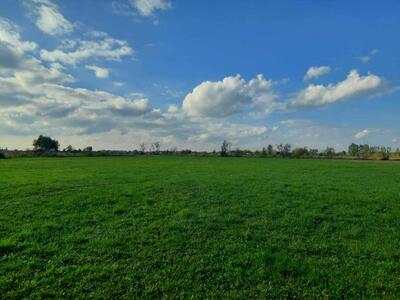 Piękna działka wystawa Południowa na lekkim wzniesieniu prąd woda w działce obok domy jednorodzinne na działce drzewka ...